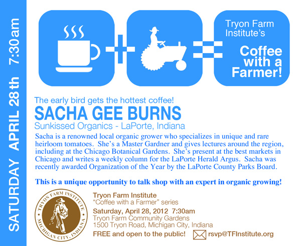 Join local grower and master gardener Sacha Gee Burns to talk organic growing! Informal Q&A. Gets tips and tricks. Learn about natural fertilizers and pest control. Inside dirt on farmers’ markets too!