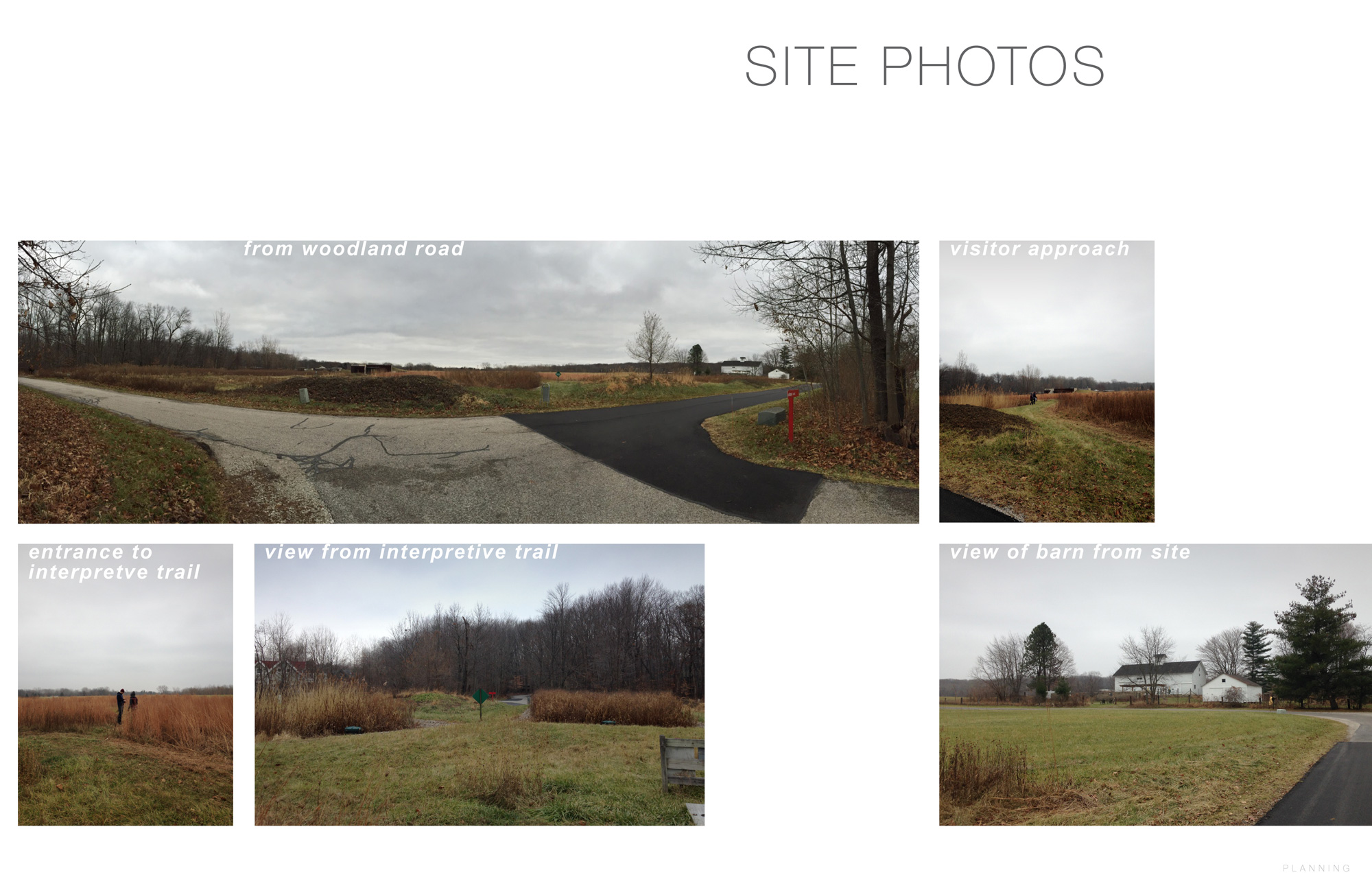 What follows is a proposal to transform the existing site (as seen in the “Site Photos” above) into an inviting trail hub space that welcomes visitors and serves as a jumping-off point for exploring the 100’s of acres of preserved natural areas of Tryon Farm.